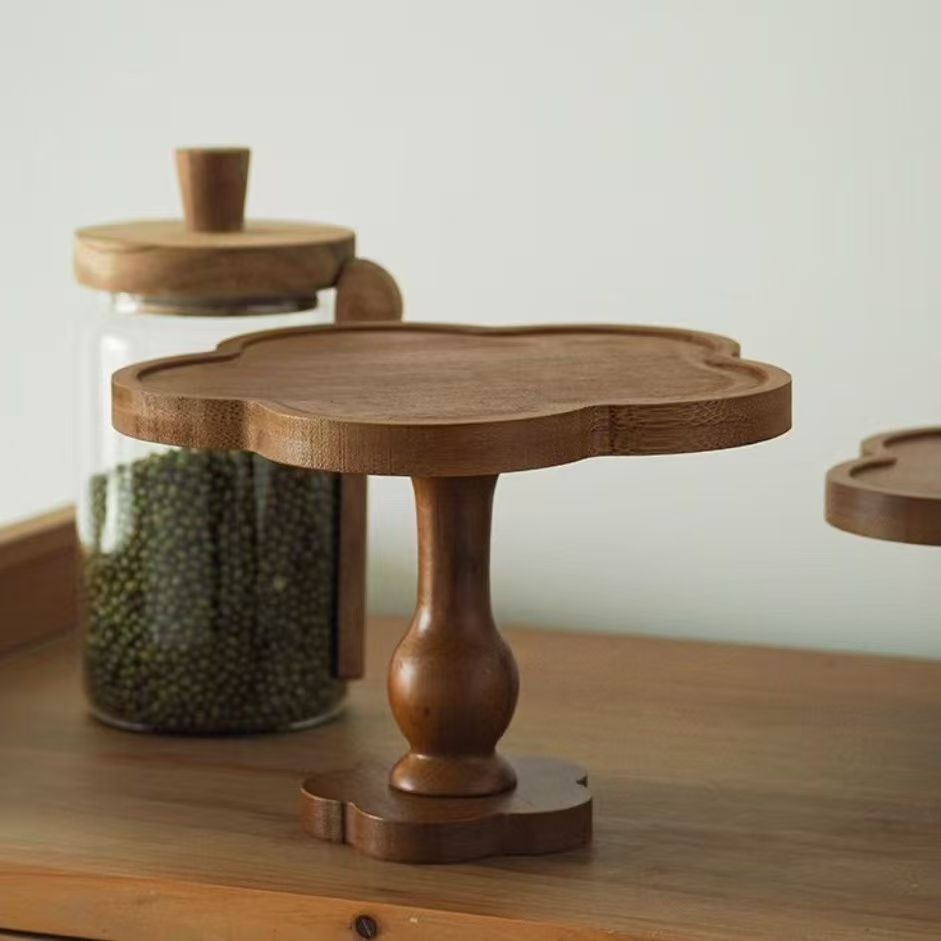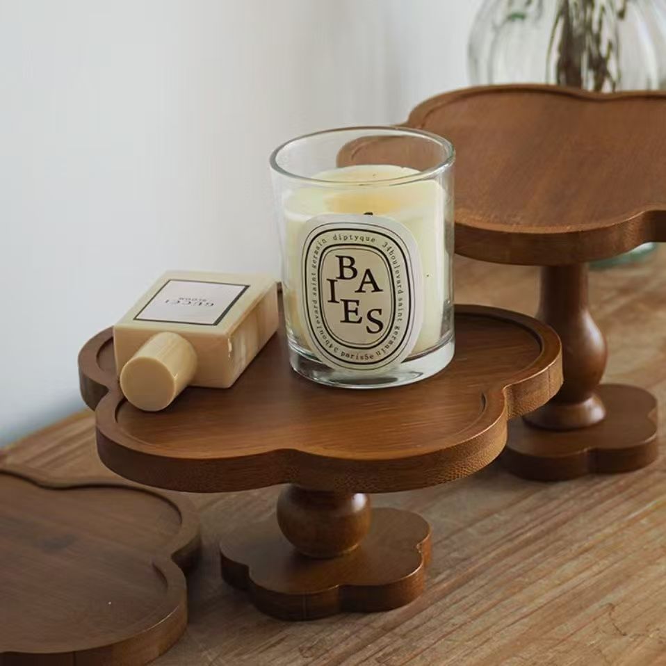 Solid Wood Vintage Lace High Foot Tray Aromatherapy Wooden Tray Candle Cake Tray Dessert Tray Floral French Style